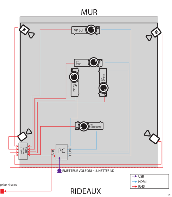 Hub auquel vont être connectés via RJ45 les vidéo projecteurs et caméras, notamment pour en gérer via le pc l'alimentation (on/off). Le hub est ensuite relié au PC de contrôle via prise RJ 45