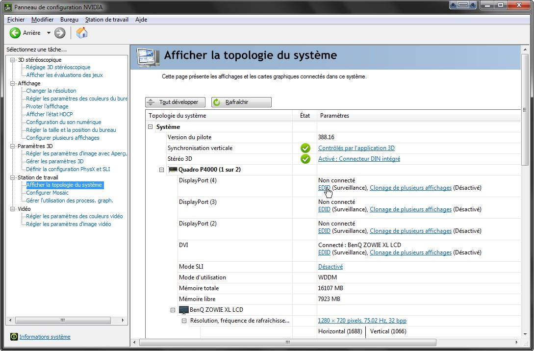 Afficher la topologie du système[1]Cliquer sur n'importe quel raccourci EDID[1] pour ouvrir la fenêtre de gestion EDID[1]