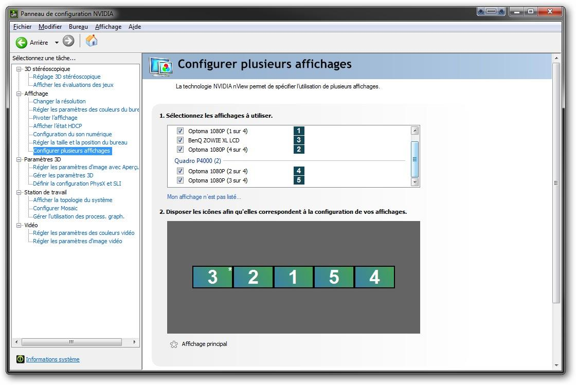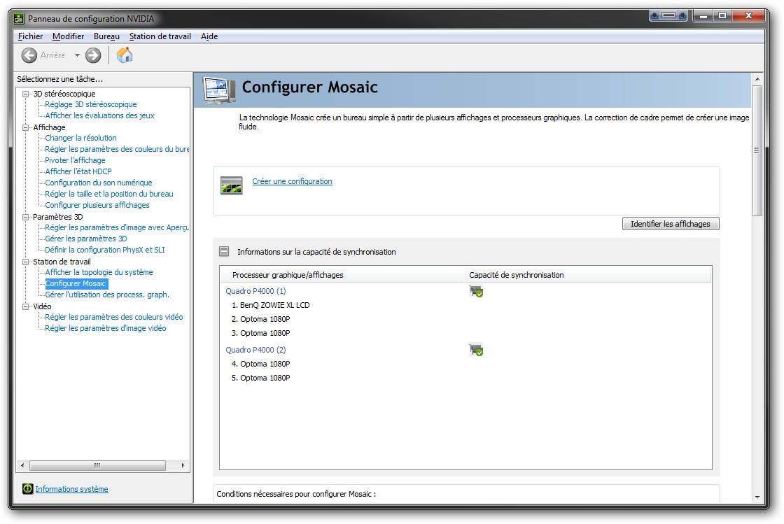 panneau de configuration Nvidia, aller dansStation de Travail/configurer MosaicRemarque :