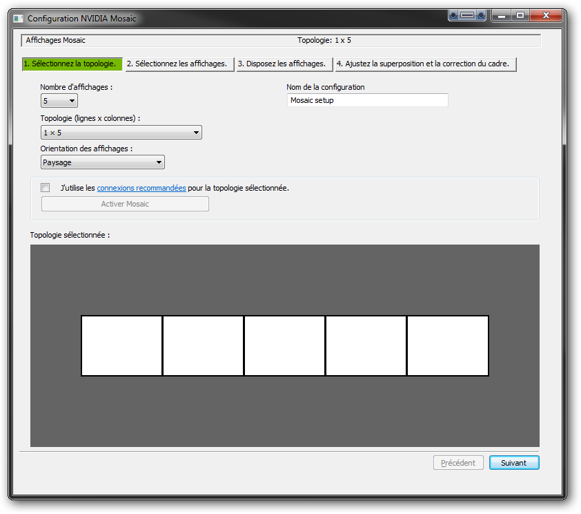 panneau de configuration Nvidia, aller dansStation de Travail/configurer MosaicPuis cliquer surCréer une configurationTopologie⚓