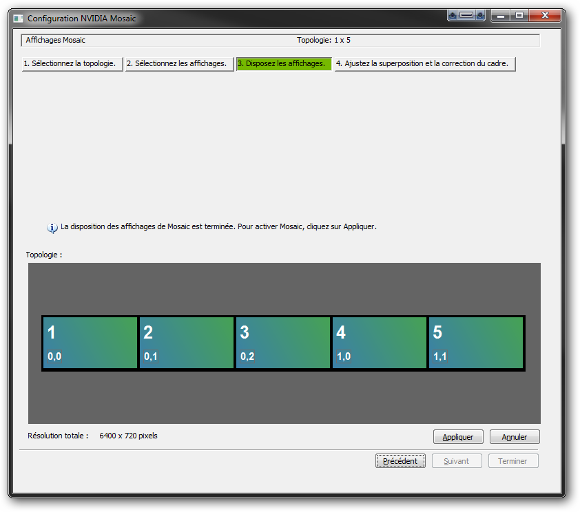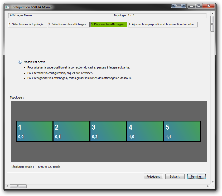 Terminerpour clôturer la configuration de la Mosaic™et retourner sur le panneau de configuration NVIDIA®.Fin de la configuration⚓