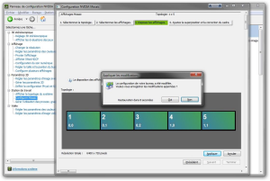 Cette procédure nécessite le redémarrage du moteur d'affichage du système d'exploitation ce qui provoque le clignotement par bascule des affichages des vidéoprojecteurs. Une fois activé vous avez 30 secondes pour valider la nouvelle disposition (Fig. 46) via la boite de dialogue Appliquer les modifications. Cette étape est « complexe » car elle nécessite de « retrouver » la boite de dialogue sur le système multi-écrans.