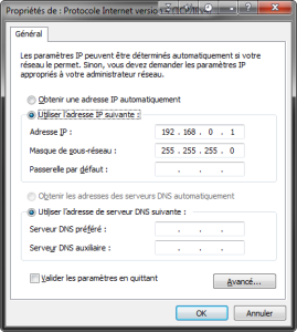 Définir l'adresse IP de cette interface comme étant 192.168.0.1.