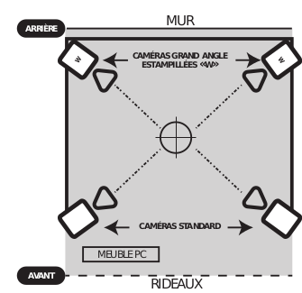 Le cube immersif est équipe de 4 caméras dont deux caméras grand angle supérieur à 80 ° (livrés avec balai et équerre de calibrage). Ces caméras permettent de détecter le positionnement de l'utilisateur équipé des lunettes avec système de tracking