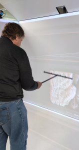 Balayer à l'aide de la baguette l'espace du cube.