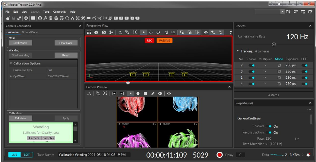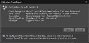 Calibrationet vérifier dans le bloc "Calibration options" que le mode OptiWand : Small (250mm) est bien actif, sinon le sélectionnerPour démarrer le process, click sur "