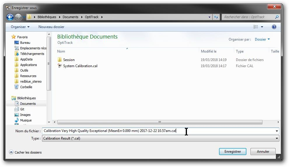 A l'issue de l'opération précédente, une boite de dialogue propose d'enregistrer la calibration