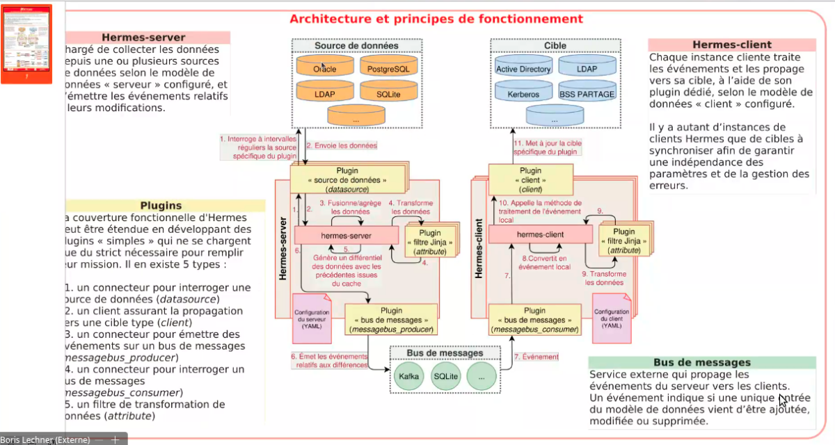 Hermes est une application open source polyvalente de synchronisation de données d’un ou plusieurs référentiels « sources » vers des destinations « cibles », utilisant les principes de capture de changements de données [1](change data capture).