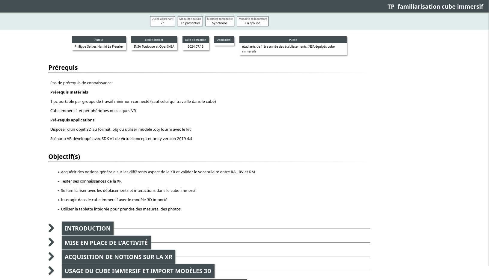 Une première phase de formation, principalement à destination des acteurs du projet DemoES INSA 2025, a suivi, concernant la production technique et pédagogique (scénarisation des formations).