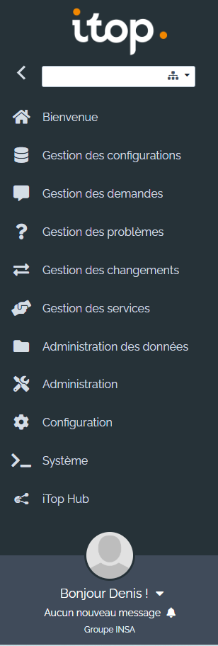 Dans sa version de test, ITOP est actuellement hébergé sur l'infrastructure informatique de l'INSA Strasbourg et le restera dans sa version de production en l'absence d'hébergement dédié au Groupe INSA.