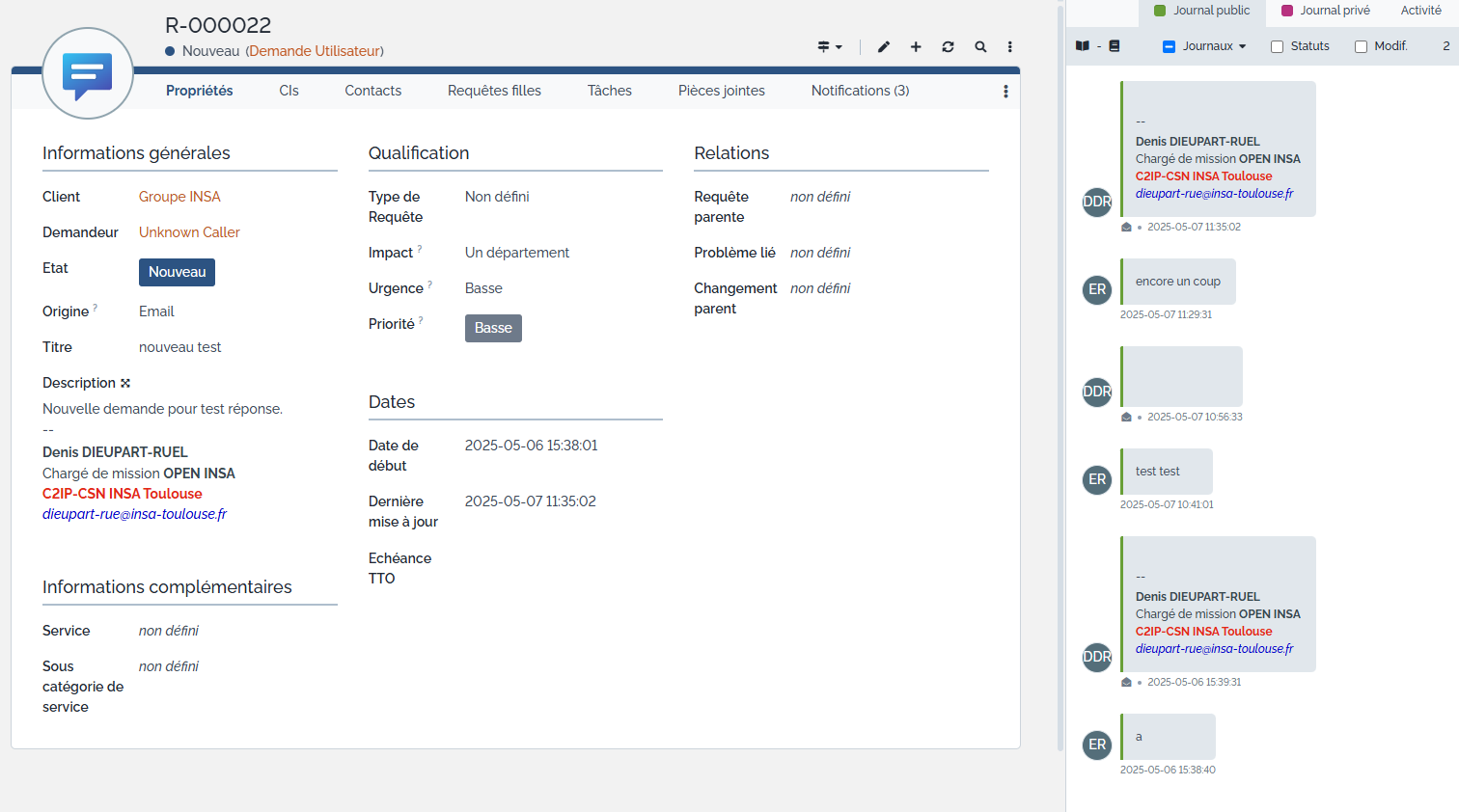 Cet outil a pour objectif d’automatiser l'enregistrement des demandes et le suivi des tickets liés aux différents objets numériques du Groupe INSA.