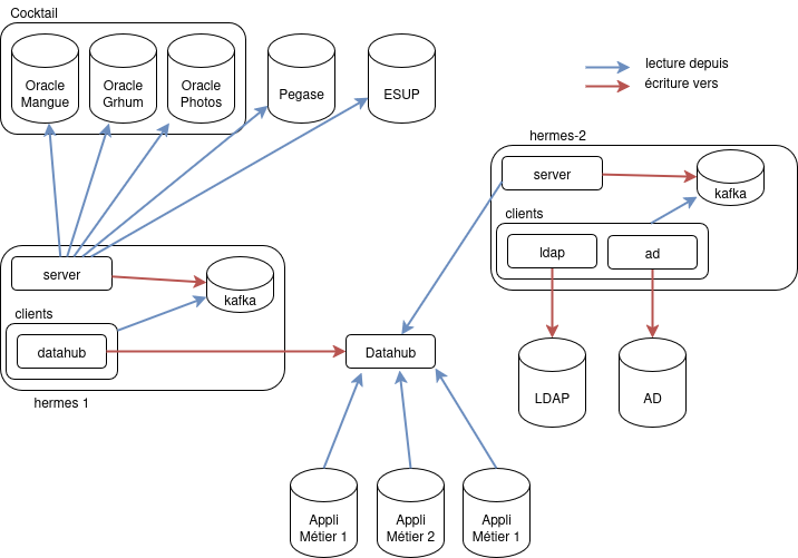 Utilisation du Datahub (avec collecte des données via Hermes) et mise à disposition des données aux applications métiers