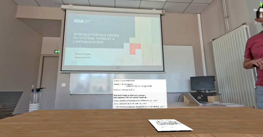 Lors de la rédaction du projet DemoES, la réalité étendue, qui englobe la réalité virtuelle, n'était pas une dimension technique intégrée de manière générique dans des déroulés pédagogiques. On recensait alors des utilisations relevant d'initiatives personnelles de la part d'enseignants ou déployées au sein de certains départements. Néanmoins, nous ne disposions pas de suffisamment de données pour évaluer l'impact au niveau des apprentissages ni pour formaliser une structuration de production et d'implémentation de ressources en réalité étendue à l'échelle du Groupe INSA. Des interrogations ont donc émergé :