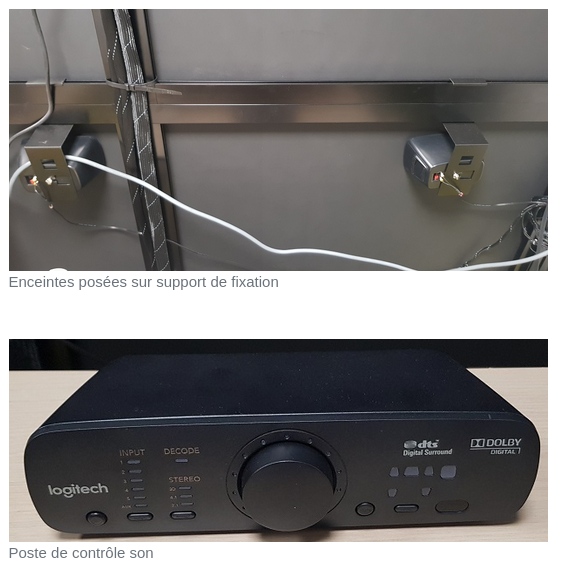 Le cube est équipé d'un système audio avec un support de fixation relié à la structure auto porteuse, 4 enceintes latérales et un booster.