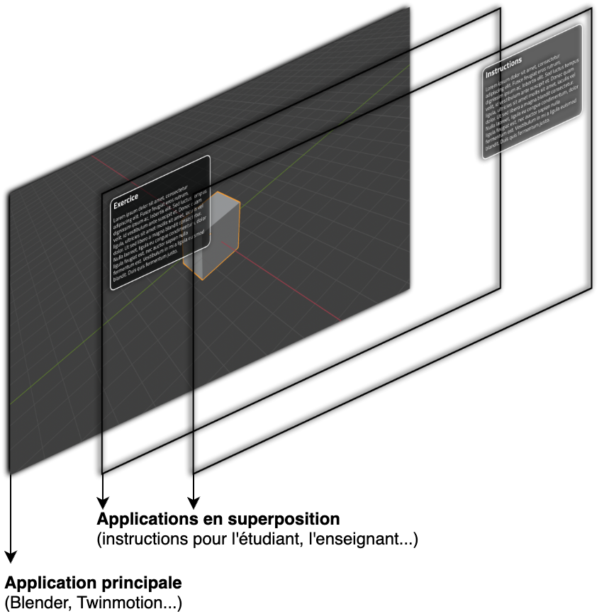 En parallèle, c'est également l'occasion de familiariser ce public à l'utilisation d'équipement en réalité virtuelle de type Cave (déplacements, interactions, import d'objets 3D en temps réel).
