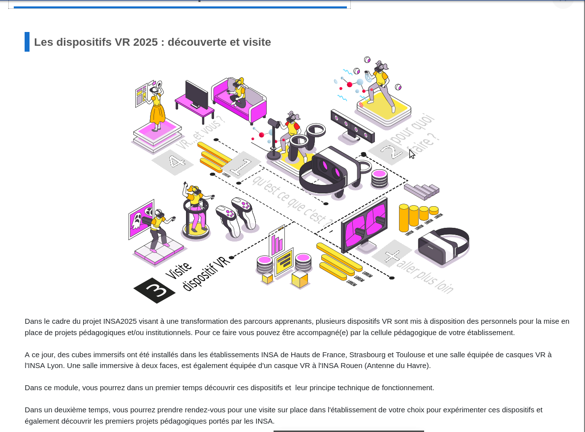 Création d'un pôle VR qui a pour objectif de rendre possible et viable l'utilisation d'environnements immersifs dans la stratégie de formation des INSA :