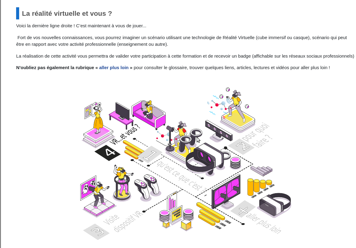 Prendre en main l'équipement de réalité virtuelle (Cube immersif, casque) par le biais d'activités pratiques