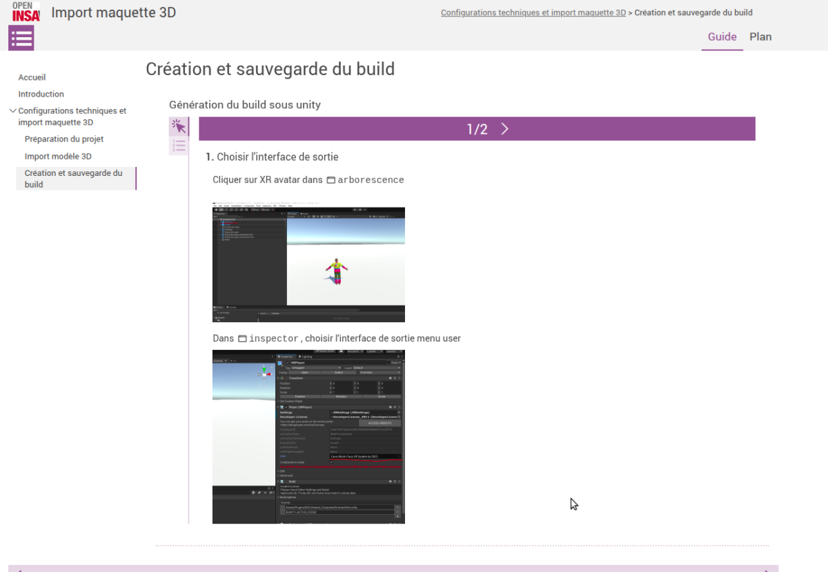 Un module de familiarisation à l'utilisation du Cube ou de casques (suivant l'équipement local) au travers de scénarios VR interactifs, permettant de découvrir les aspects fonctionnels de l'équipement, d'une part, et, d'autre part, de tester l'import d'une maquette 3D fournie afin de pouvoir interagir avec elle en environnement immersif.