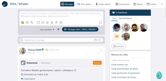 Les trois outils les plus prometteurs ont été présentés aux directeurs des INSA et à certaines commissions du GIP. À l’issue de cette analyse, c’est la solution Whaller qui a été retenue pour son bon rapport qualité/prix, sa simplicité d’utilisation et sa flexibilité, notamment grâce à la possibilité de basculer vers l’offre “Donjon” si le Groupe INSA choisissait de renforcer les aspects sécurité.
